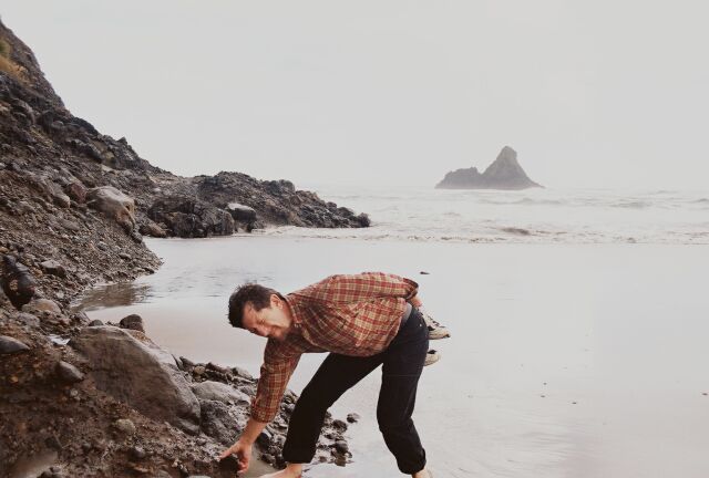 My brother, Phil, wanted me to bring him back rocks. Here I am collecting black sand in a 35 mm film can.